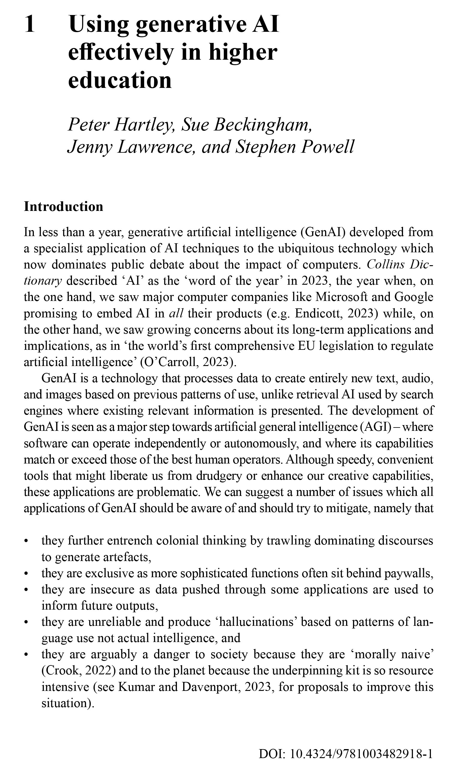 Using Generative AI Effectively in Higher Education explores how higher education providers can realise their role and responsibility in harnessing the power of generative artificial intelligence (GenAI) ethically and sustainably.