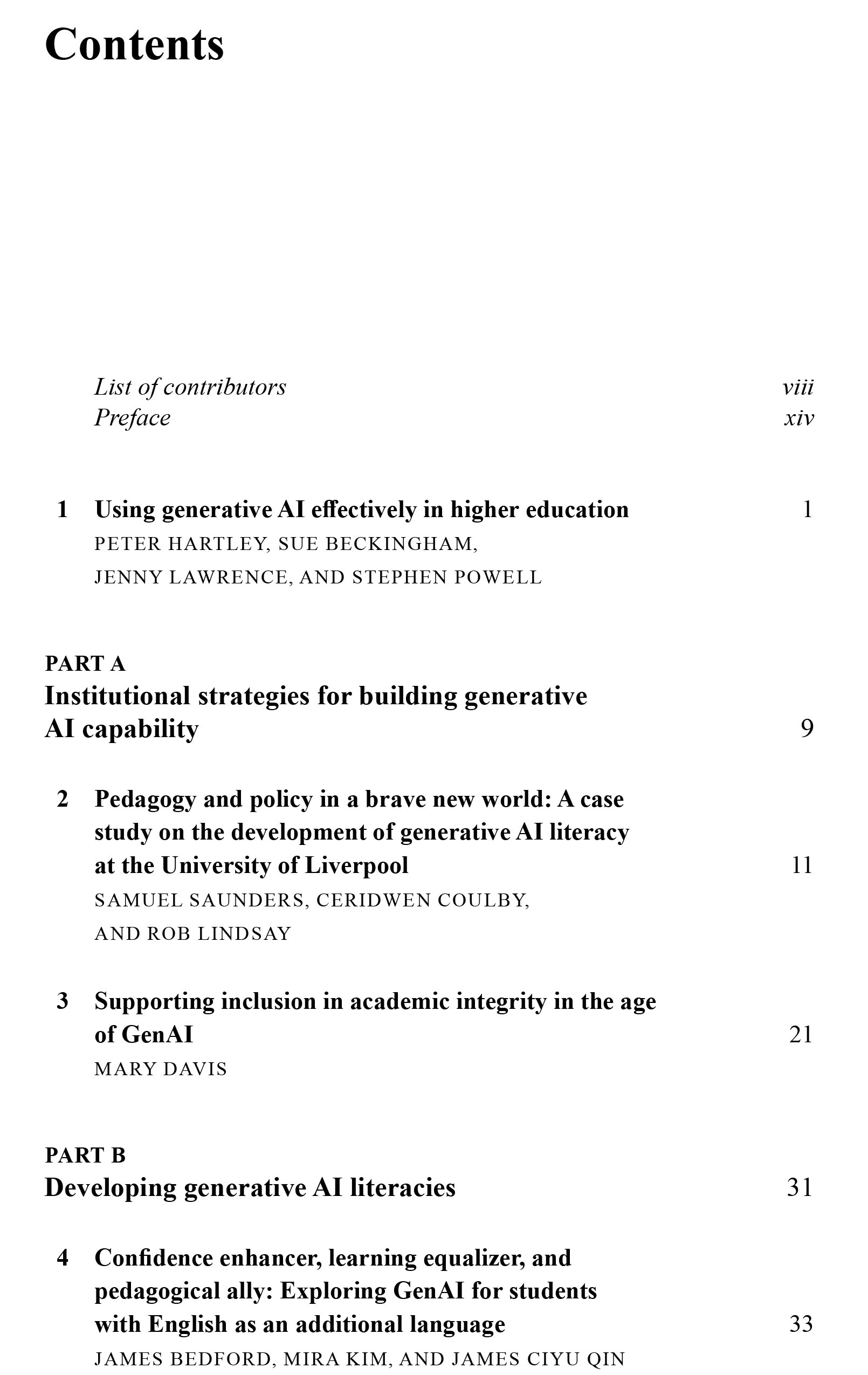 This rich collection of established and evaluated practices from across global higher education offers a practical guide to leading an agile institutional response to emerging technologies, building critical digital literacy across an entire institution, and embedding the ethical and sustainable use of GenAI in teaching, learning, and assessment. Including reflections from stakeholders testifying to the value of the approaches outlined, the book examines how higher education can equip staff and students with the critical-digital literacy necessary to use GenAI in work, study, and social life responsibly and with integrity. It provides an evidence-based resource for any kind of higher education (HE) provider (modern, college-based, and research-focused) looking for inspiration and approaches which can build GenAI capability and includes chapters on the development of cross-institutional strategy, policies and processes, pedagogic practices, and critical-digital literacy.
