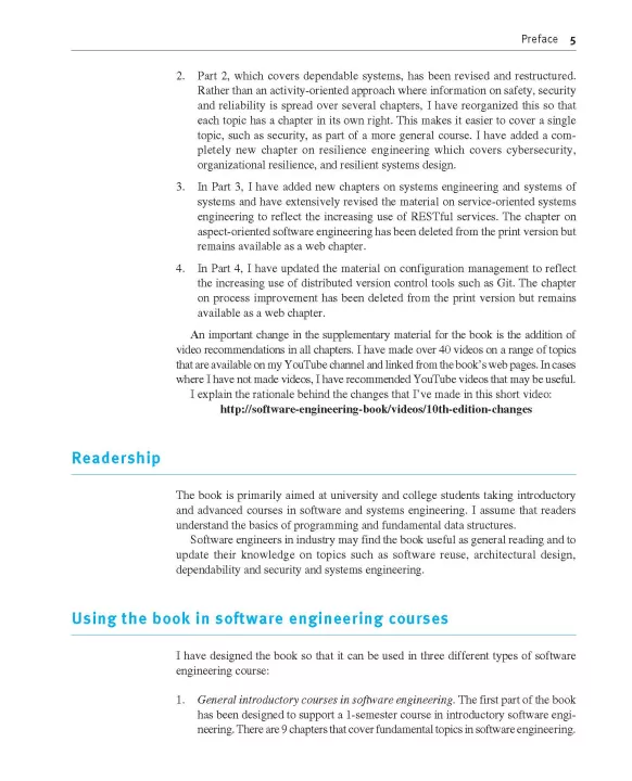 The Tenth Edition contains new information that highlights various technological updates of recent years, providing readers with highly relevant and current information. Sommerville’s experience in system dependability and systems engineering guides the text through a traditional plan-based approach that incorporates some novel agile methods. The text strives to teach the innovators of tomorrow how to create software that will make our world a better, safer, and more advanced place to live.