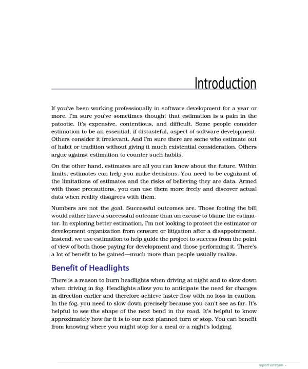 Estimating software development often produces more angst than value, but it doesn't have to. Identify the needs behind estimate requests and determine how to meet those needs simply and easily. Choose estimation techniques based on current needs and available information, gaining benefit while reducing cost and effort. Detect bad assumptions that might sink your project if you don't adjust your plans. Discover what to do when an estimate is wrong, how to recover, and how to use that knowledge for future planning. Learn to communicate about estimates in a healthy and productive way, maximizing advantage to the organization and minimizing damage to the people.