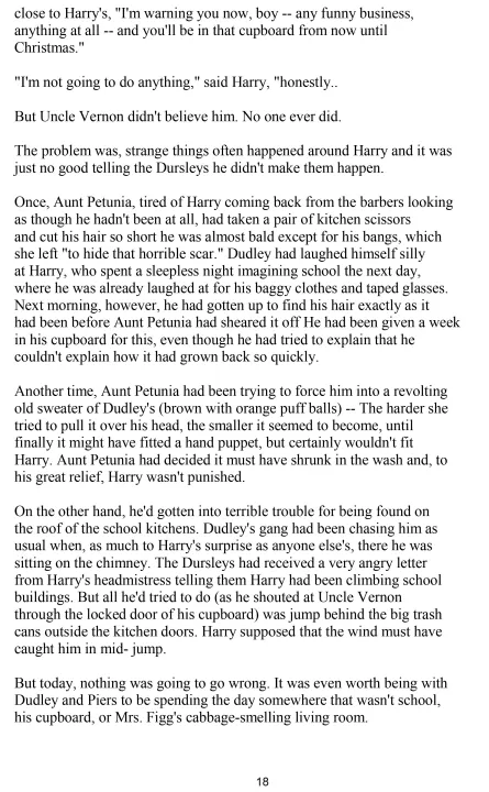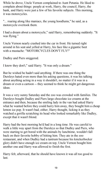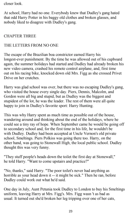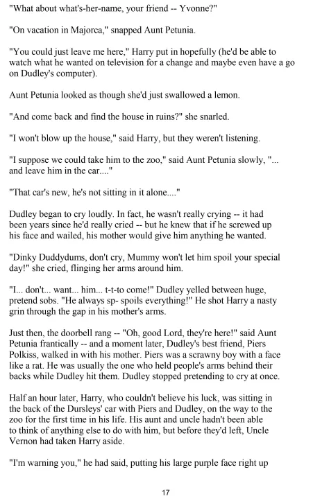 the Dursleys, his horrible aunt and uncle, and their abominable son,