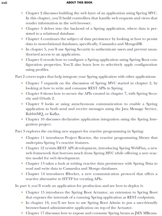 Over the years, Spring in Action has helped tens of thousands of developers get a major productivity boost from Spring. This new edition of the classic bestseller covers all of the new features of Spring 5.3 and Spring Boot 2.4 along with examples of reactive programming, Spring Security for REST Services, and bringing reactivity to your databases. You'll also find the latest Spring best practices, including Spring Boot for application setup and configuration.