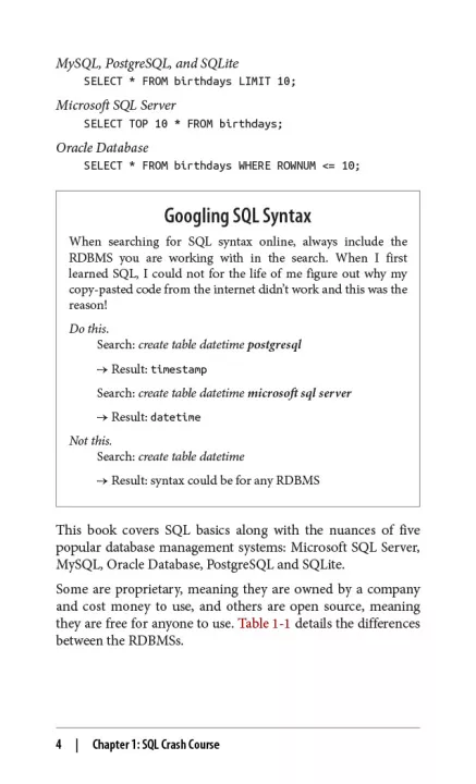 In this updated edition, author Alice Zhao describes how these database management systems implement SQL syntax for both querying and making changes to a database. You'll find details on data types and conversions, regular expression syntax, window functions, pivoting and unpivoting, and more.