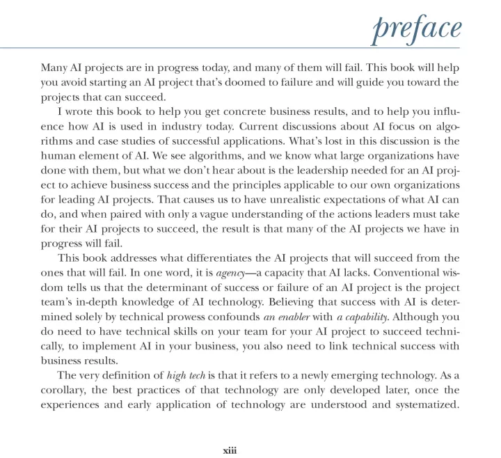 Succeeding with AI requires talent, tools, and money. So why do many well-funded, state-of-the-art projects fail to deliver meaningful business value? Because talent, tools, and money aren’t enough: You also need to know how to ask the right questions. In this unique book, AI consultant Veljko Krunic reveals a tested process to start AI projects right, so you’ll get the results you want.