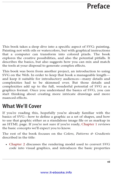 SVG text and shapes can be painted on the screen or page. You'll start