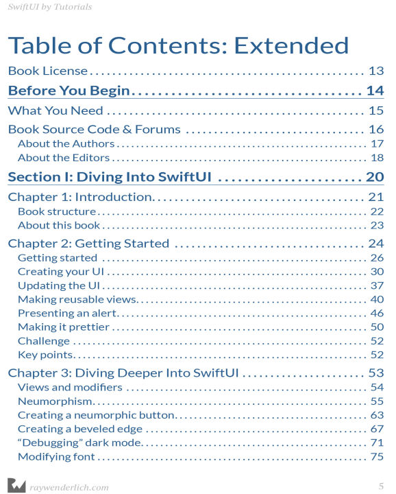 Topics Covered in SwiftUI by Tutorials