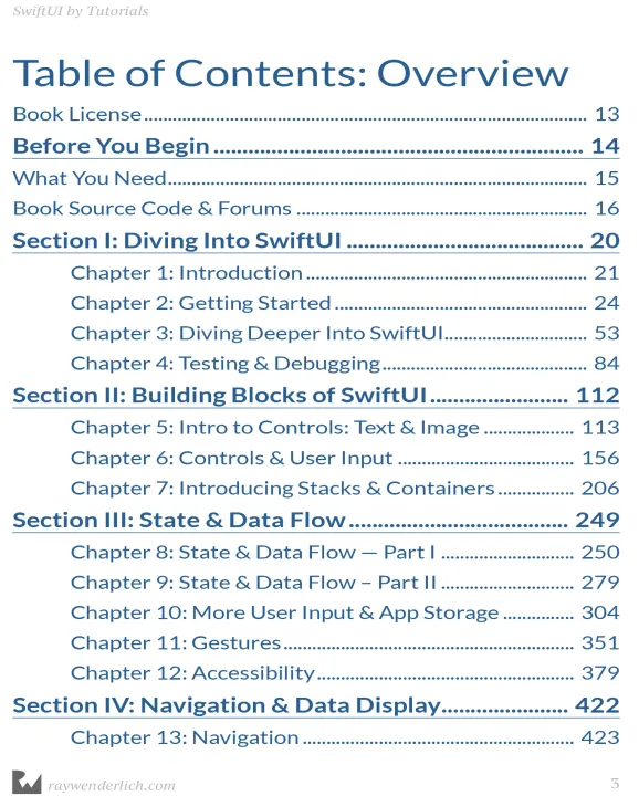Topics Covered in SwiftUI by Tutorials