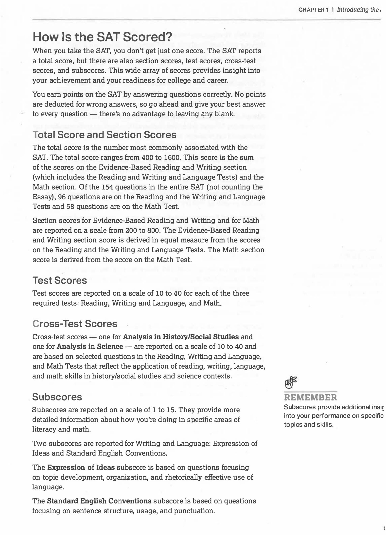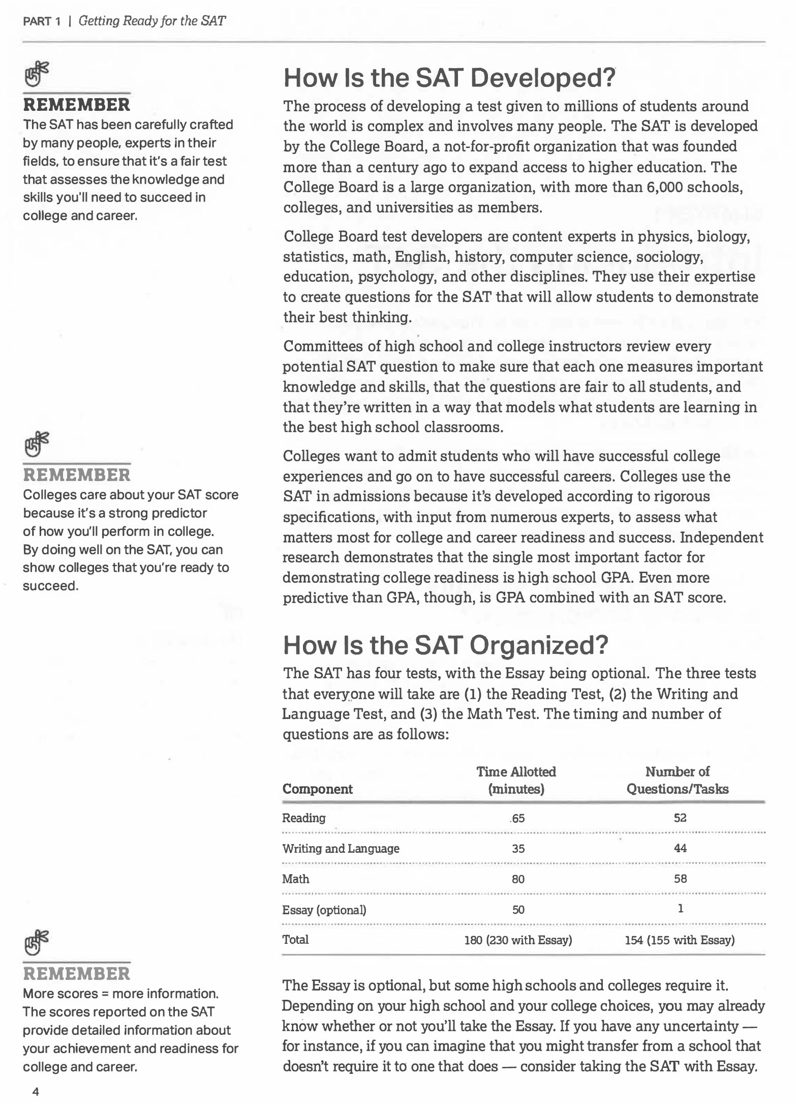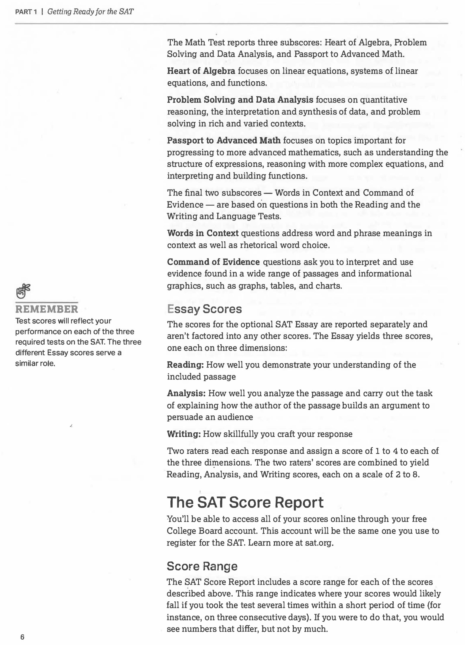 • detailed descriptions of the math and evidenced based reading and writing sections