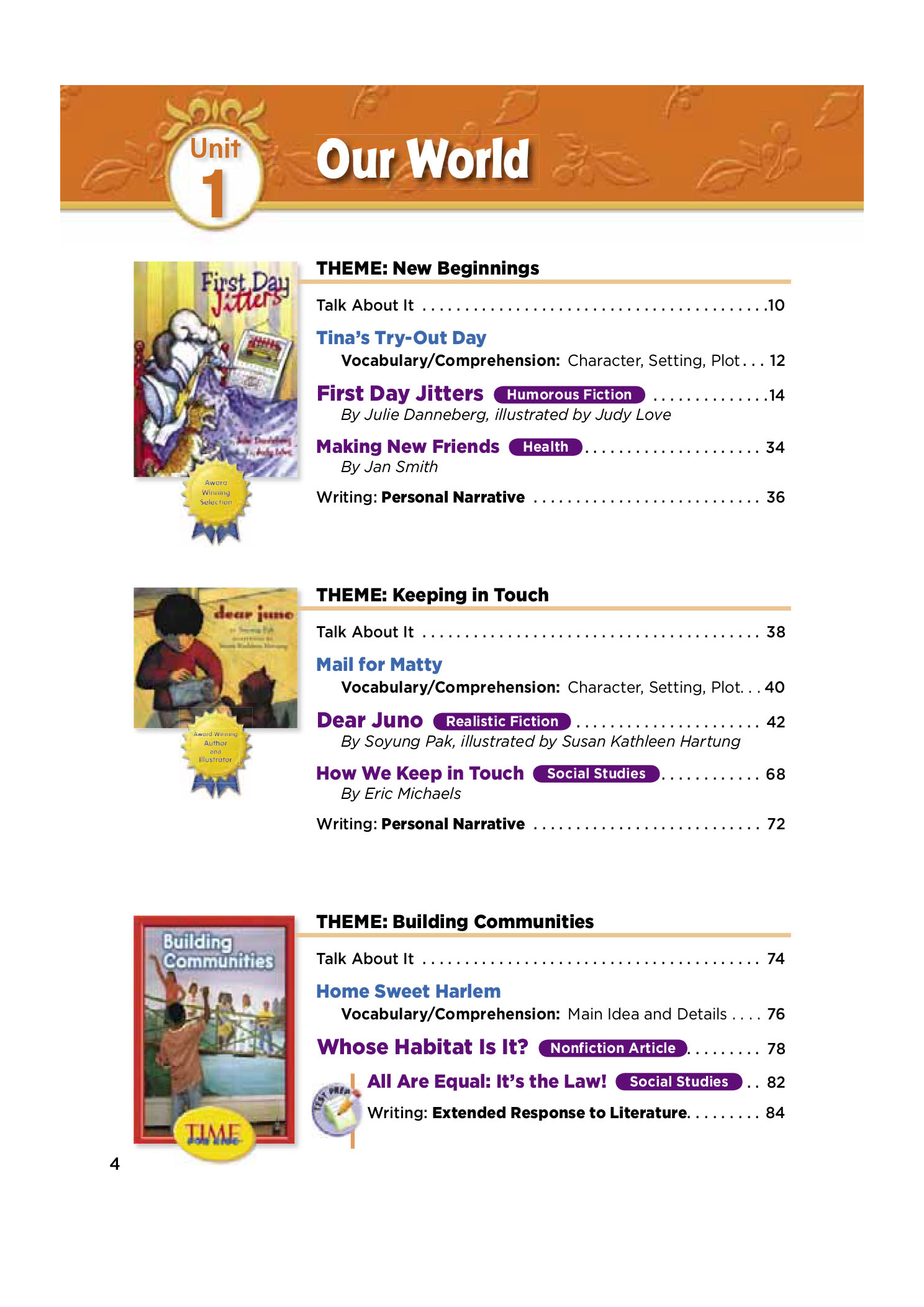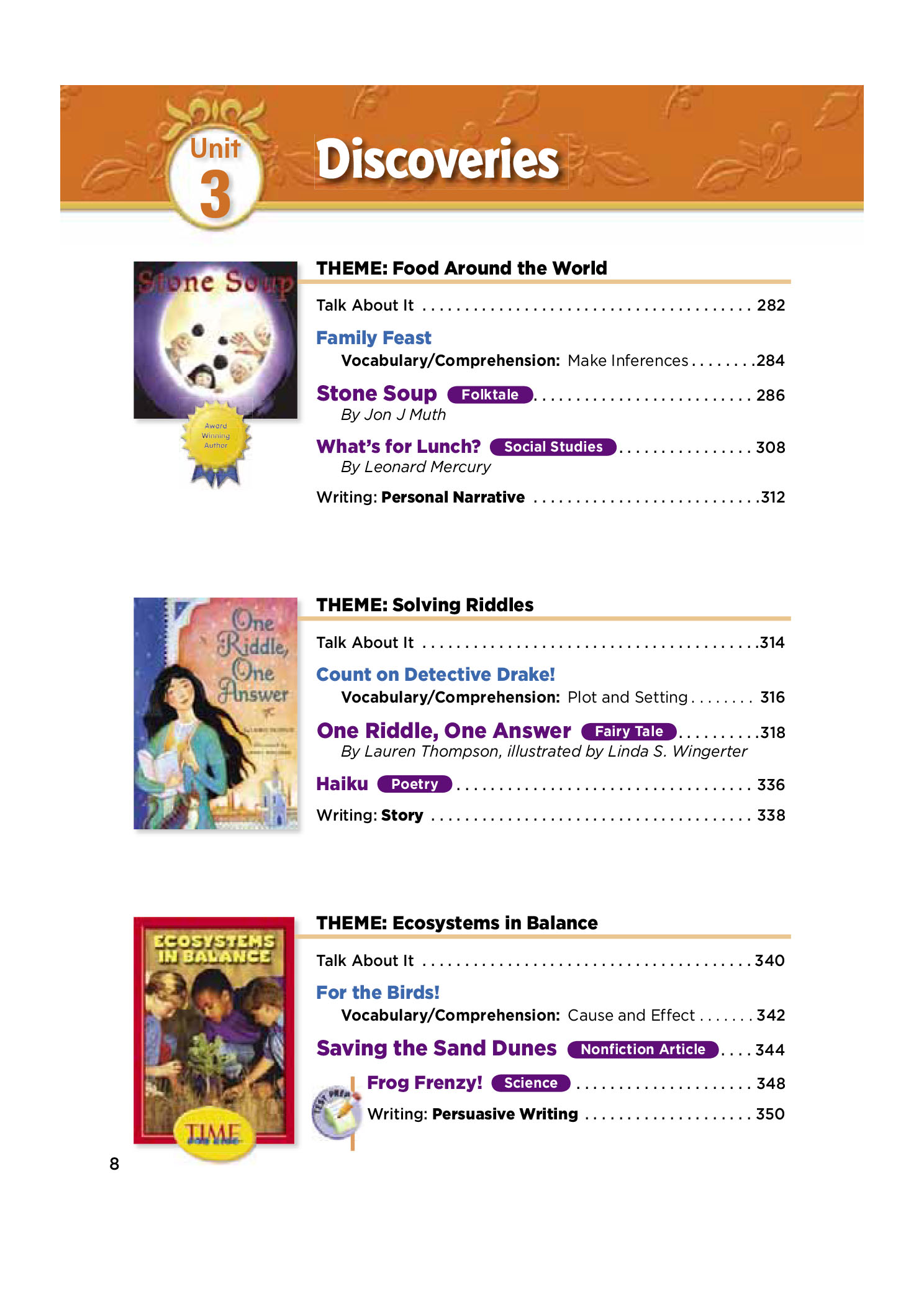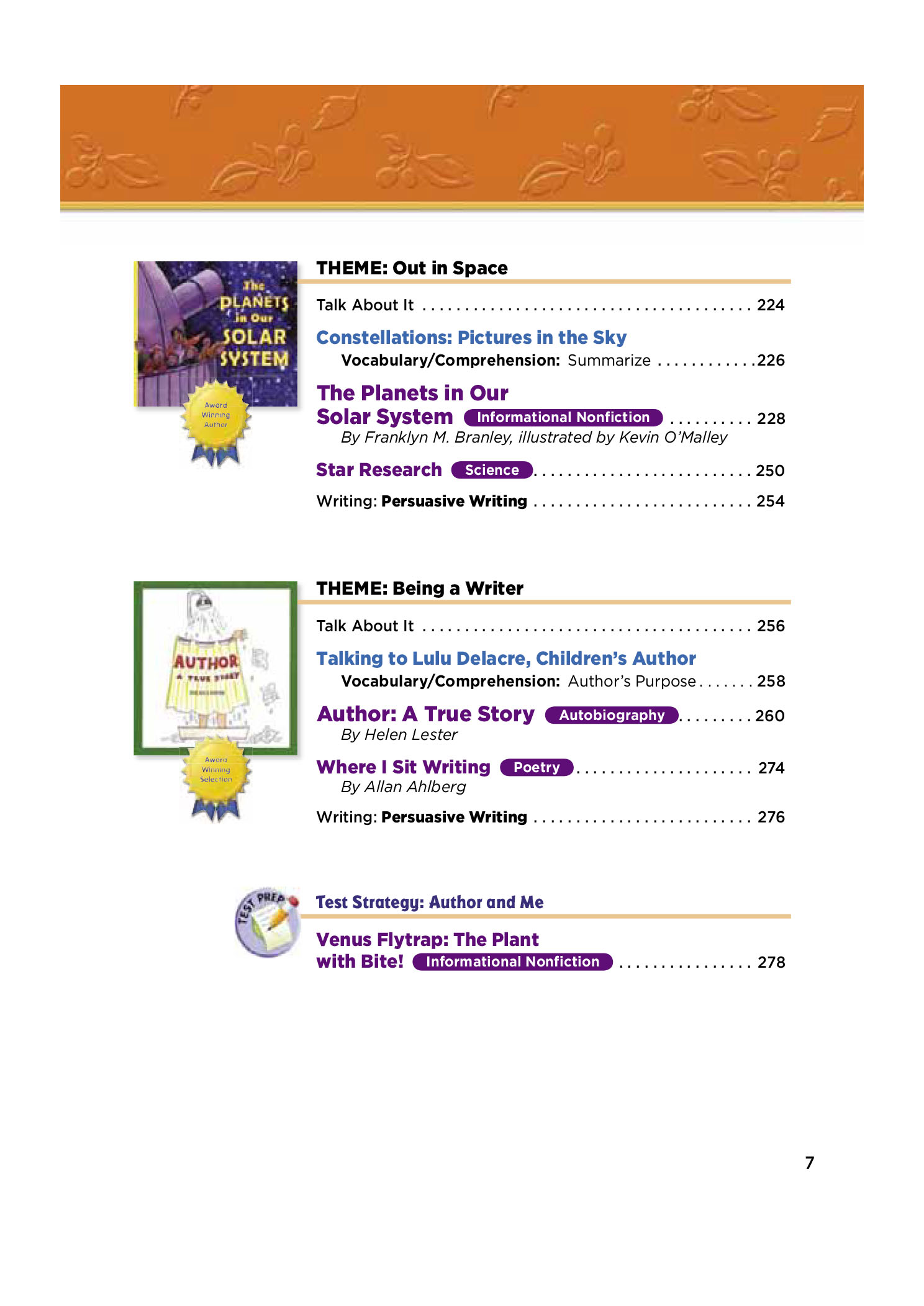 "Treasures" provides pupils with engaging literature, an emphasis on nonfiction and a strong focus on comprehension, vocabulary and fluency helping them to be successful readers and test-takers. "Treasures" also offers phonics, spelling, grammar and writing integrated into all differentiated reading and instructional materials to help make learning meaningful.