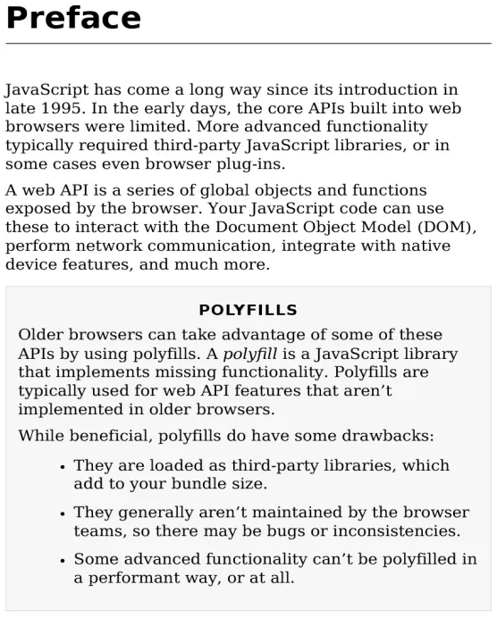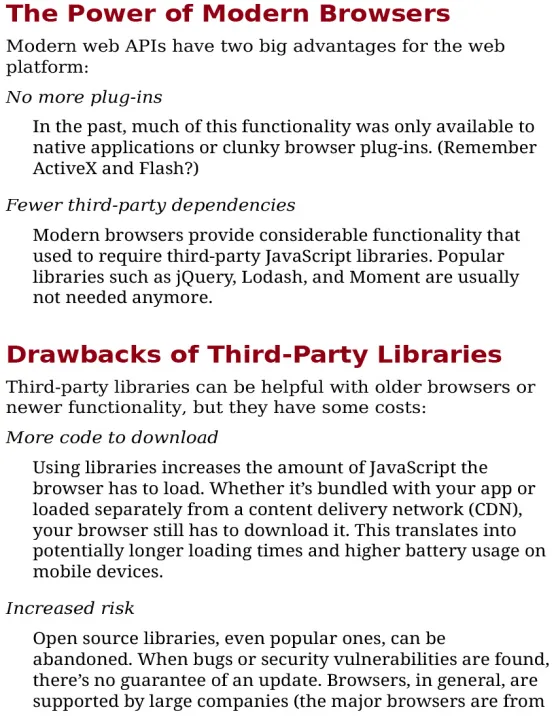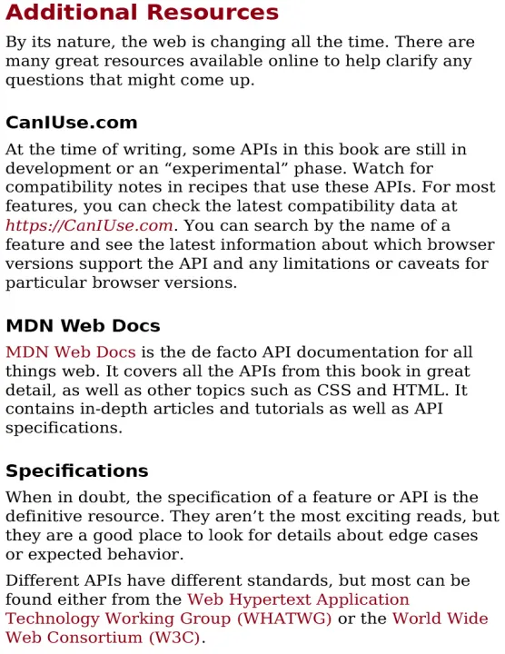 JavaScript gives web developers great power to create rich interactive browser experiences, and much of that power is provided by the browser itself. Modern web APIs enable web-based applications to come to life like never before, supporting actions that once required browser plug-ins. Some are still in an experimental stage, but many are ready for use today.