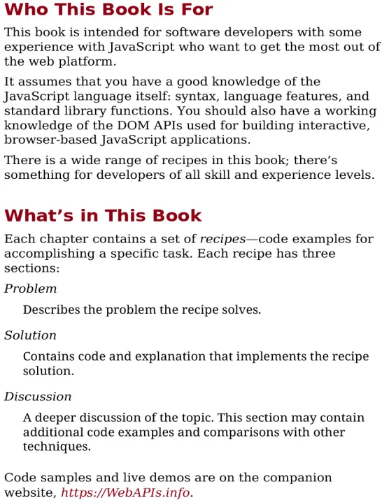 With this hands-on cookbook, author Joe Attardi helps you explore the powerful APIs available in modern browsers and guides you through the specific tasks that they unlock. Because these features are web standards, there is comprehensive documentation available from trusted resources such as MDN Web Docs. The knowledge you'll gain is transferable across different companies and projects.