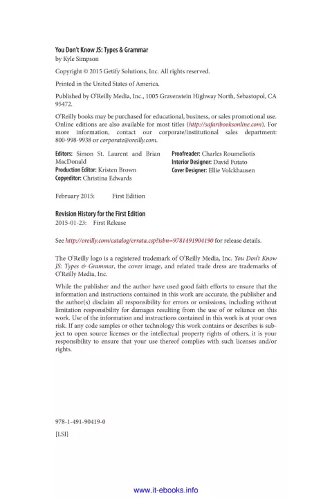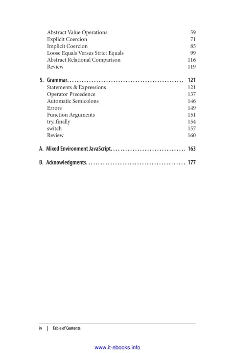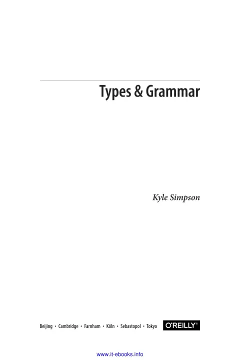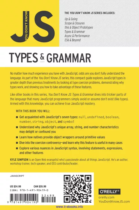 Like other books in this series, You Don’t Know JS: Types & Grammar dives into trickier parts of the language that many JavaScript programmers simply avoid or assume don’t exist (like types). Armed with this knowledge, you can achieve true JavaScript mastery.