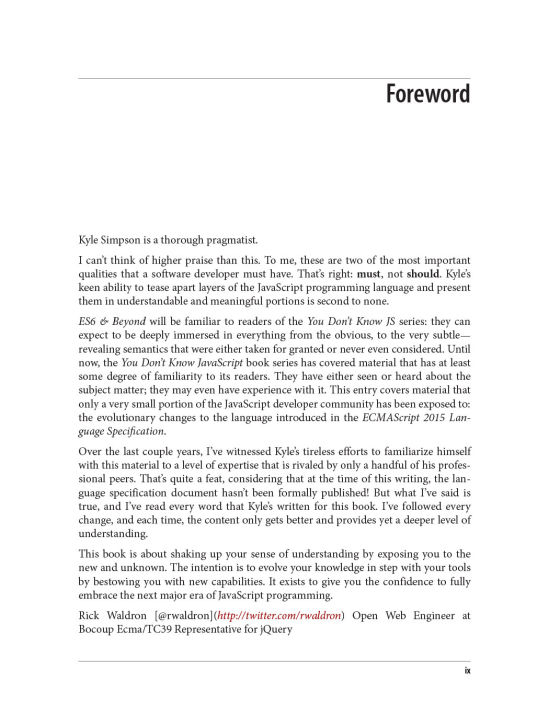 Like other books in this series, You Don’t Know JS: ES6 & Beyond dives into trickier parts of the language that many JavaScript programmers simply avoid. Armed with this knowledge, you can achieve true JavaScript mastery.