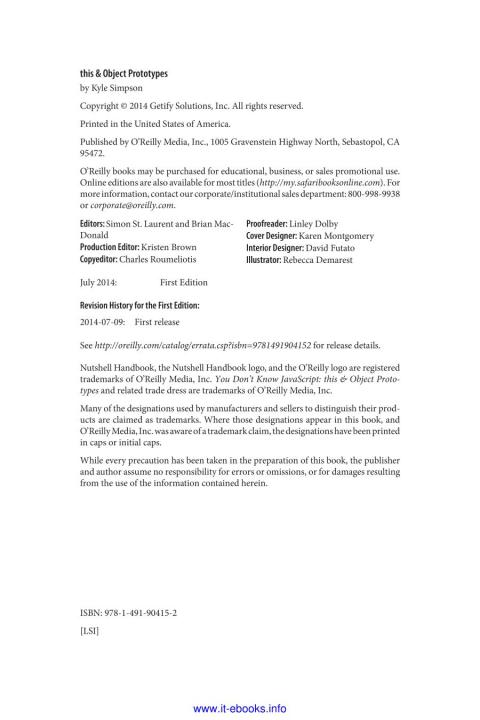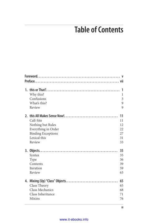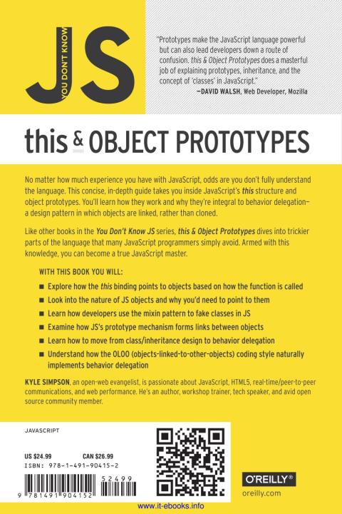 No matter how much experience you have with javascript, odds are you don’t fully understand the language. This concise, in-depth guide takes you inside javascript’s this structure and object prototypes. You’ll learn how they work and why they’re integral to behavior delegation—a design pattern in which objects are linked, rather than cloned.