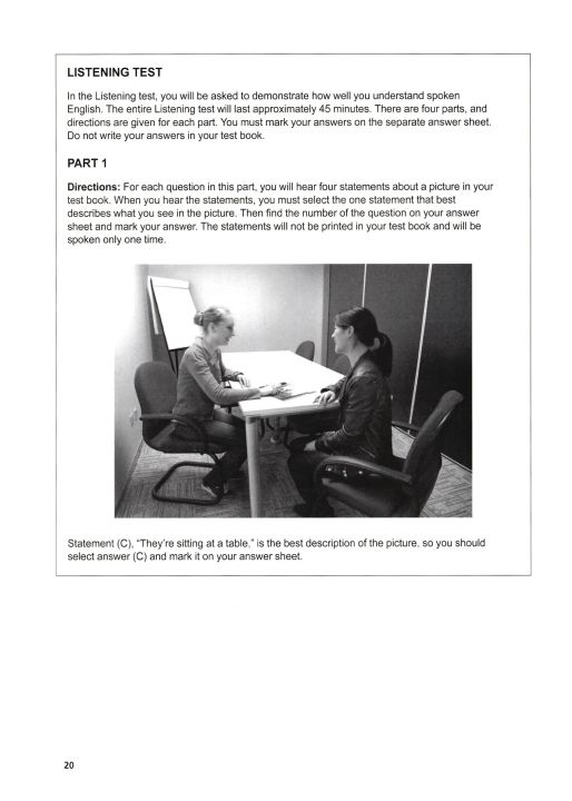 Phần nghe được cho là giống 100% khi đi thi thật, giọng đọc audio trong các bài test LC (Listening Comprehension) là giọng của người bản xứ đến từ Anh, Úc, Mỹ, Canada… cũng chính là giọng đọc trong đề thi TOEIC thật.