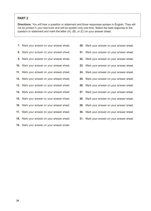 Kết hợp ôn theo từng bài test giữa sách LC và RC. Như vậy các bạn có thể làm đủ 7 Part theo đề thi TOEIC thật.