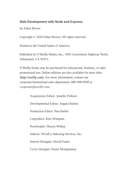 Build dynamic web applications with Express, a key component of the Node/JavaScript development stack. In this updated edition, author Ethan Brown teaches you Express fundamentals by walking you through the development of an example application. This hands-on guide covers everything from server-side rendering to API development suitable for usein single-page apps (SPAs).